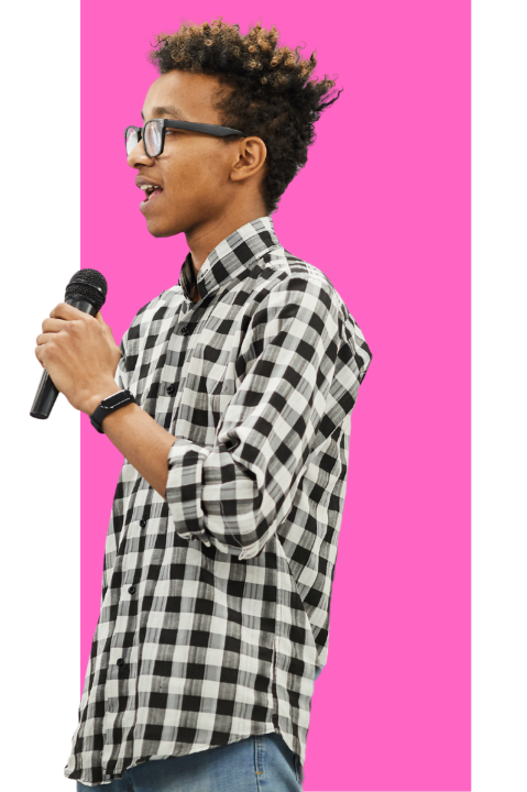 Ideas without voice have no impact. This domain builds the capacity to communicate, pitch, advocate, and lead. Students learn that their perspective matters — and that sharing it changes what's possible for them and for others.